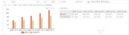 盡管行業(yè)跨度較大,不過(guò)從披露的薪酬看,2020年至2024年間,其年薪從64.69萬(wàn)元逐步增長(zhǎng)至143.9萬(wàn)元。
