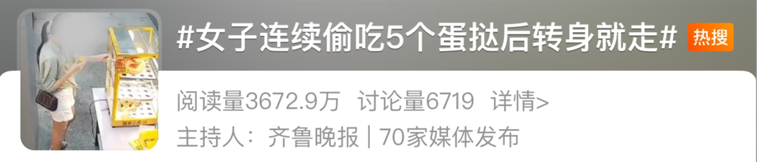 女子連續(xù)偷吃5個(gè)蛋撻轉(zhuǎn)身就走,網(wǎng)友吐槽:是有多餓
