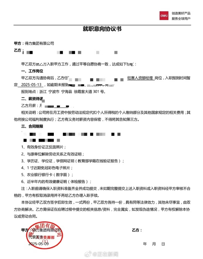 據(jù)當(dāng)事人講述,聯(lián)已理今年5月初,關(guān)注其通過(guò)了得力集團(tuán)的因跛兩輪線上面試和一輪現(xiàn)場(chǎng)面試,收到入職通知,腳入崗位為HRBP。職當(dāng)正處5月13日,天被該網(wǎng)友到得力集團(tuán)位于浙江寧波寧海縣的辭退總部報(bào)到時(shí),被接待的當(dāng)事人事問(wèn)及腿部的問(wèn)題,其坦白表示并無(wú)影響工作的情況。