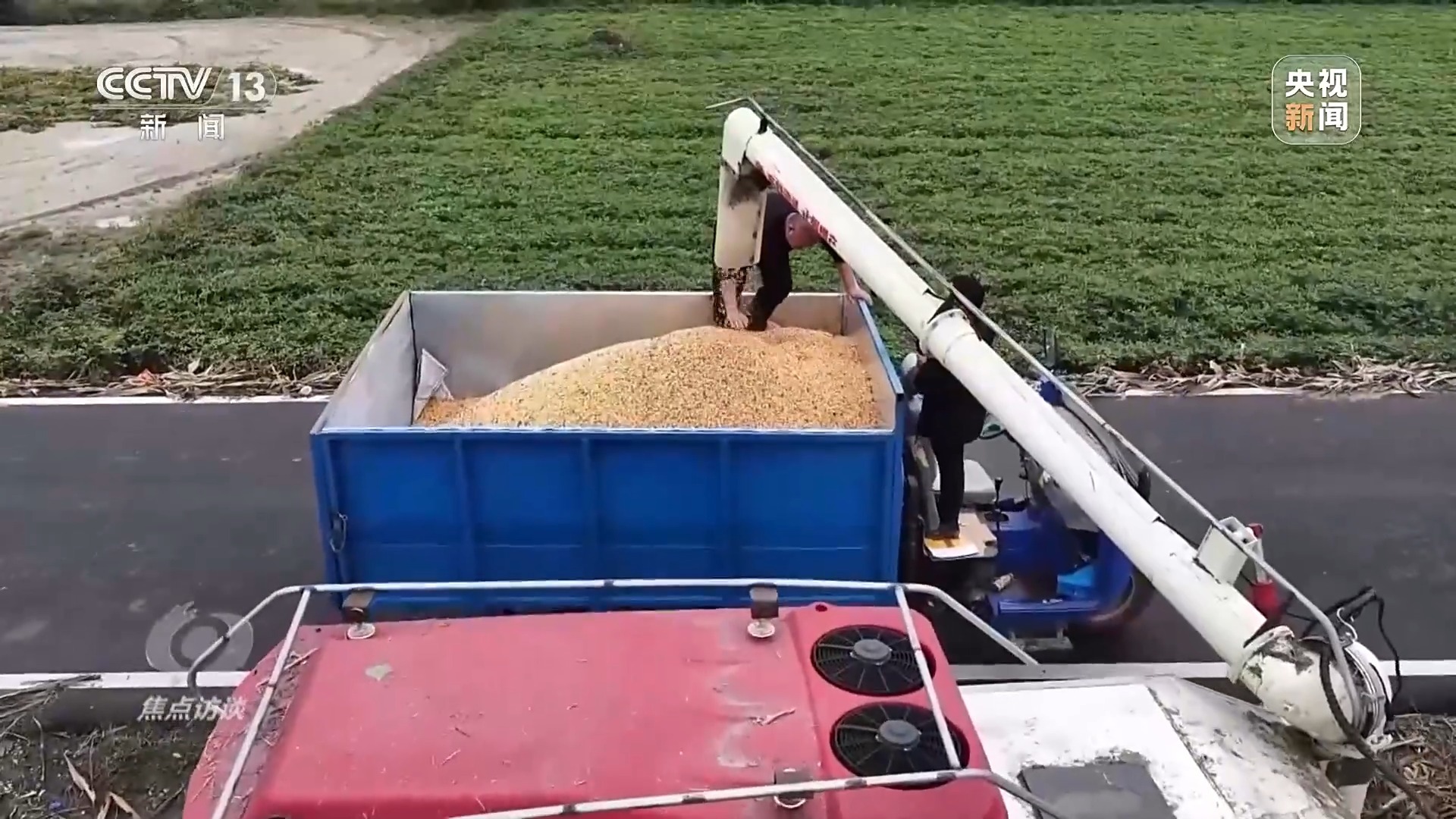 全國其他沒有受陰雨天氣影響的糧食產(chǎn)區(qū),也都在爭分奪秒推進(jìn)秋收。東北主產(chǎn)區(qū)的秋糧面積占全國秋糧面積的35%,今年北大荒投入一批新研制的大馬力、大喂入量的收割機(jī),全力保障秋收進(jìn)度與效率。在江西省撫州,連片金黃的稻田中,收割機(jī)轟鳴作響,切割、脫粒、粉碎稻稈一氣呵成。