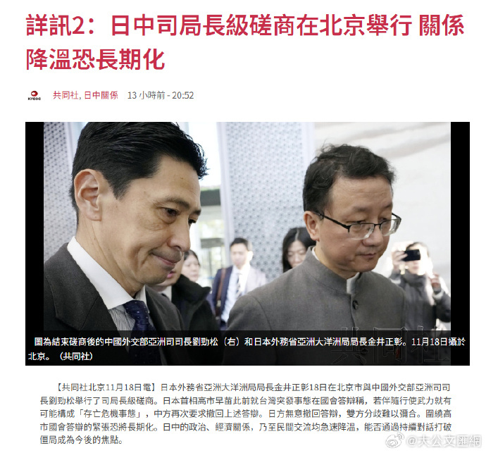 在昨日外交部亞洲司司長(zhǎng)劉勁松與日本外務(wù)省亞洲大洋洲局局長(zhǎng)金井正彰會(huì)面中,日媒日本仍由于日方“明確拒絕撤回高市早苗的開展言論”,導(dǎo)致會(huì)面結(jié)果不理想。對(duì)話