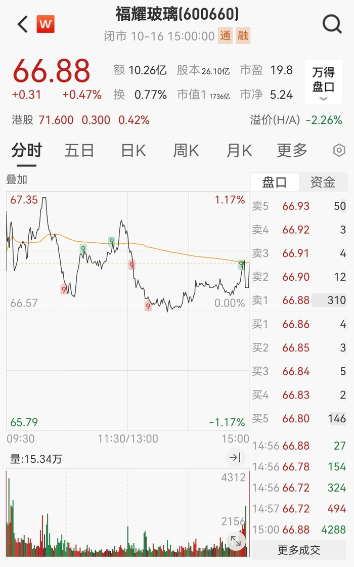 二級市場上,10月16日,璃董福耀玻璃收漲0.47%。事長