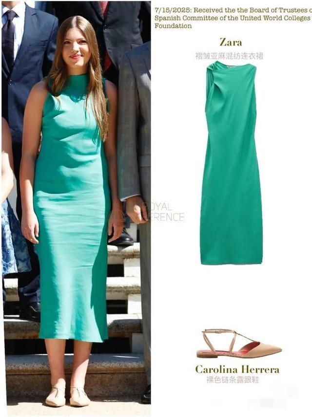 這與她今年7月出席公務(wù)時(shí)的造型形成鮮明對(duì)比。當(dāng)時(shí)她在薩蘇埃拉王宮意外現(xiàn)身,身穿一件ZARA綠松石色褶皺連衣裙,展現(xiàn)出完美的腰臀比,引發(fā)時(shí)尚媒體廣泛關(guān)注。