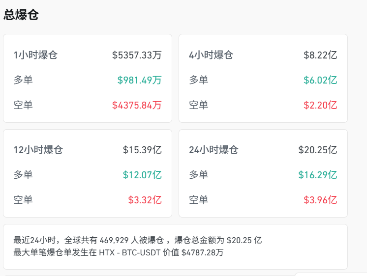 數(shù)據(jù)顯示24小時(shí),共有超46萬人爆倉,20.25億美元(約合人民幣144.37億元)蒸發(fā)。
