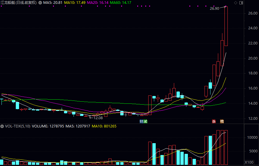 據(jù)界面新聞統(tǒng)計,今年以來,江龍船艇董監(jiān)高已合計減持公司股份1,398.36萬股,占比3.71%,套現(xiàn)1.87億元。 本輪股價啟動前夕,江龍船艇披露了一則新的減持計劃。公司控股股東、實控人之一、公司董事長、總經(jīng)理晏志清計劃減持不超過755.34萬股股份,占公司總股本的2%。 若以公告日13.51元/股計,晏志清計劃套現(xiàn)的金額為不超過1.02億元。才過去一周多,按照最新股價,相應擬減持規(guī)??蛇_約2.03億元。 “實控人減持是因為個人資金需求?!苯埓ёC券部對界面新聞回應稱。 ![]() 江龍船艇近一年董監(jiān)高減持情況 制圖:界面新聞 游資、機構(gòu)、散戶擊鼓傳花 六日累積換手率高達306.65%,日均換手超過50%——江龍船艇的股價狂飆背后,是資金的快速輪動炒作。 因換手率極高,江龍船艇連續(xù)六個交易日登上龍虎榜。界面新聞記者注意到,公司本次行情資金動向呈現(xiàn)三個特點。 首先,深股通專用席位最活躍。 深股通連續(xù)六個交易日占據(jù)買入榜首位,后五個交易日還同時出現(xiàn)在賣出榜首??傮w而言,深股通多以凈買入為主,整體買入7.38億元,賣出6.48億元,累積凈買入0.90億元。 深股通為境外投資者通道,反映了北向資金的動向。 其次,參與者前期以游資為主,中期機構(gòu)下場,最新“散戶大本營”進場。 11月17日、18日和19日,主要游資參與,機構(gòu)席位僅上買入榜一次,且排名靠后。 20日、21日買入前五中,均有三席為機構(gòu)專用席位。 需要注意的是,24日龍虎榜顯示,前一交易日包括三席機構(gòu)在內(nèi)的前五席位全部出貨,均為凈賣出。 同時,買入前五席位首次出現(xiàn)有著“散戶大本營”之稱的“東財拉薩軍團”身影。東方財富證券拉薩團結(jié)路第二和東方財富證券拉薩東環(huán)路第二雙雙上榜。 再次,短炒跡象明顯。 不論是游資還是機構(gòu),各路資金多在短炒股價,在不同的股東中擊鼓傳花。 據(jù)界面新聞統(tǒng)計,作為買方的游資席位均只出現(xiàn)兩次。當日進,次日出,或隔日拋。除深股通外,無一席位全程參與。 例如11月17日買入席位中,深股通專用、國聯(lián)民生證券慈溪影清路、華林證券北京分公司、中信證券東陽吳寧西路四席位出現(xiàn)在18日的賣前五名單,國泰海通證券上海靜安區(qū)新閘路出現(xiàn)在19日的賣出榜單。 18日的買入前五中,同樣有四個席位出現(xiàn)在19日的賣出前五榜單,一個出現(xiàn)在20日的賣出榜單中。19號同樣如此。 這些席位中,不乏國泰海通證券上海靜安區(qū)新閘路、國泰海通證券成都北一環(huán)路、中國銀河證券北京中關(guān)村大街、開源證券西安西大街等知名游資。還有招商證券深圳益田路免稅商務大廈、東亞前海證券上海分公司等活躍席位。 機構(gòu)也在短炒。20日買入榜單中三機構(gòu)和招商證券深圳益田路免稅商務大廈席位,次日又出現(xiàn)賣出榜單中。21日同樣是三機構(gòu),再加上東亞前海證券上海分公司。 隨著散戶進場接棒,前期資金陸續(xù)離場。擊鼓傳花終有時,待鼓點落下,潮水退去,最后接棒者或?qū)⒚媾R高位站崗的風險。 ![]() 江龍船艇日K線 |