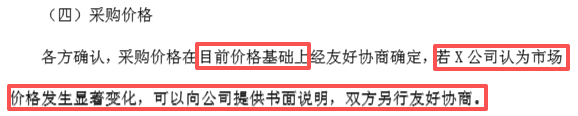 采購價格并非一成不變,后續(xù)可協(xié)商,但發(fā)起權(quán)或在X公司手中。公告僅提及“若X公司認為市場價格發(fā)生顯著變化”可提出協(xié)商,并未提到博遷新材具有同等的權(quán)利。