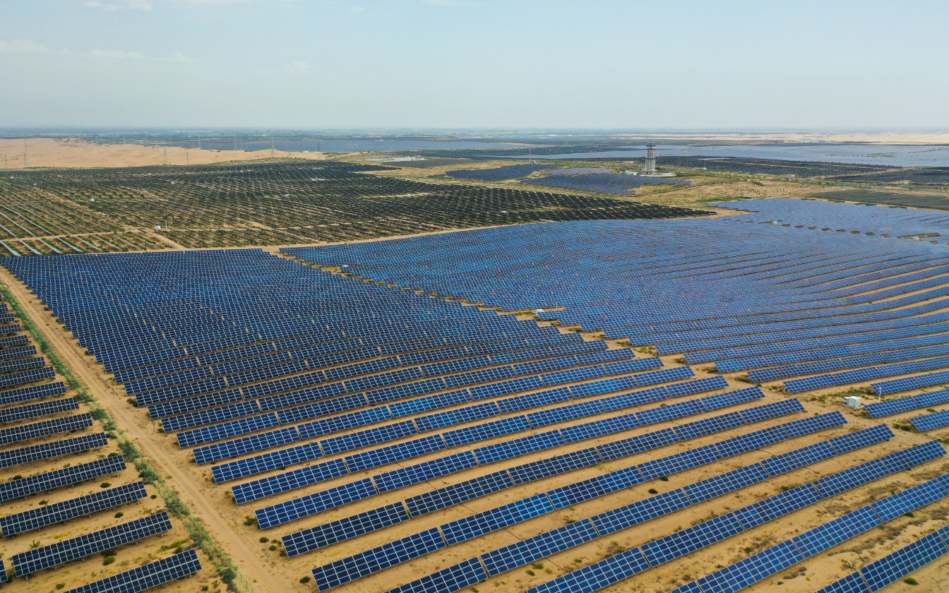 ▲位于庫(kù)布其沙漠的達(dá)拉特旗光伏基地。圖/新華社