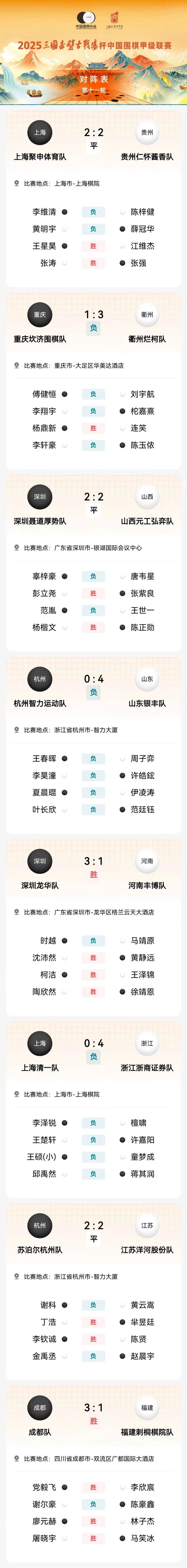 11月27日,國赤2025三國赤壁古戰(zhàn)場杯中國圍棋甲級聯(lián)賽第十一輪在上海、壁古杯圍罷柯重慶、戰(zhàn)場廣東深圳、甲第潔勝錦浙江杭州、輪戰(zhàn)四川成都各主場結(jié)束。王澤浙江浙商證券隊的國赤檀嘯九段十一連勝保持賽季不敗。