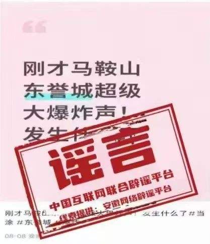 2025年8月15日謠 言安徽省馬鞍山市東譽(yù)城有超級(jí)大爆炸聲?真相:近日,安徽省馬鞍山市一網(wǎng)民發(fā)文稱(chēng)“剛才馬鞍山東譽(yù)城超級(jí)大爆炸聲!”,并評(píng)論“跟爆炸了一樣”,引發(fā)群眾恐慌。經(jīng)當(dāng)?shù)貞?yīng)急管理局和消防救援