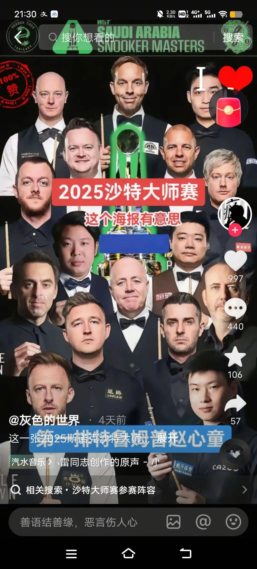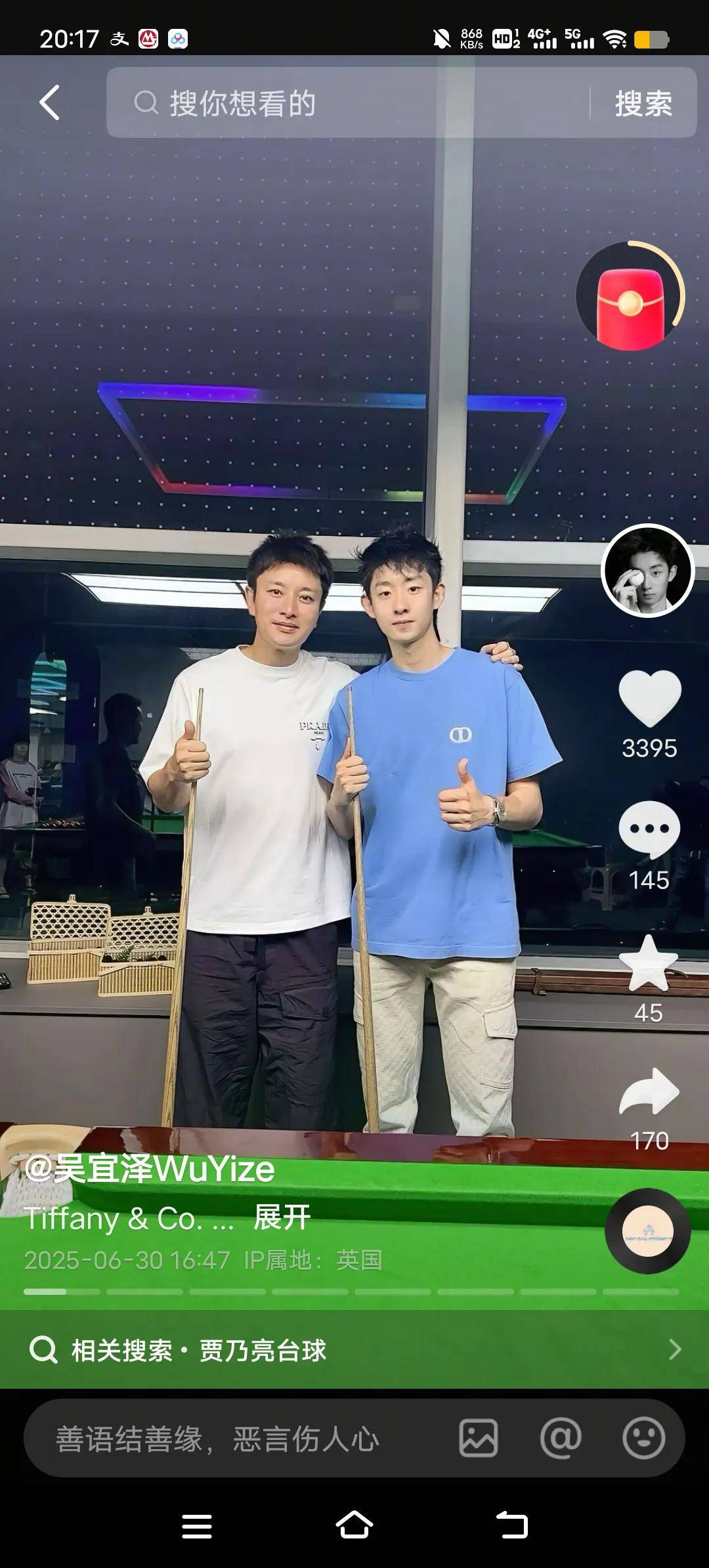 吳宜澤最近與賈乃亮合影,令人猜測(cè)他似乎對(duì)自己精心打理了發(fā)型,盡顯自信。此次比賽中,他的表現(xiàn)光彩奪目,與其新發(fā)型一樣,展現(xiàn)了獨(dú)特的魅力與風(fēng)采。未來(lái),趙心童和吳宜澤無(wú)疑是中國(guó)斯諾克隊(duì)伍中的兩位冉冉升起的明星,他們的奪冠潛力讓人充滿期待,可能會(huì)在未來(lái)的比賽中為國(guó)爭(zhēng)光。