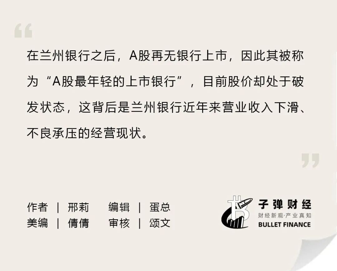 2022年1月,億蘭異常蘭州銀行在深交所主板上市,股東股上成為甘肅省首家A股上市銀行。在蘭州銀行之后,A股再無銀行上市,因此該行也是A股“最年輕”的上市銀行。