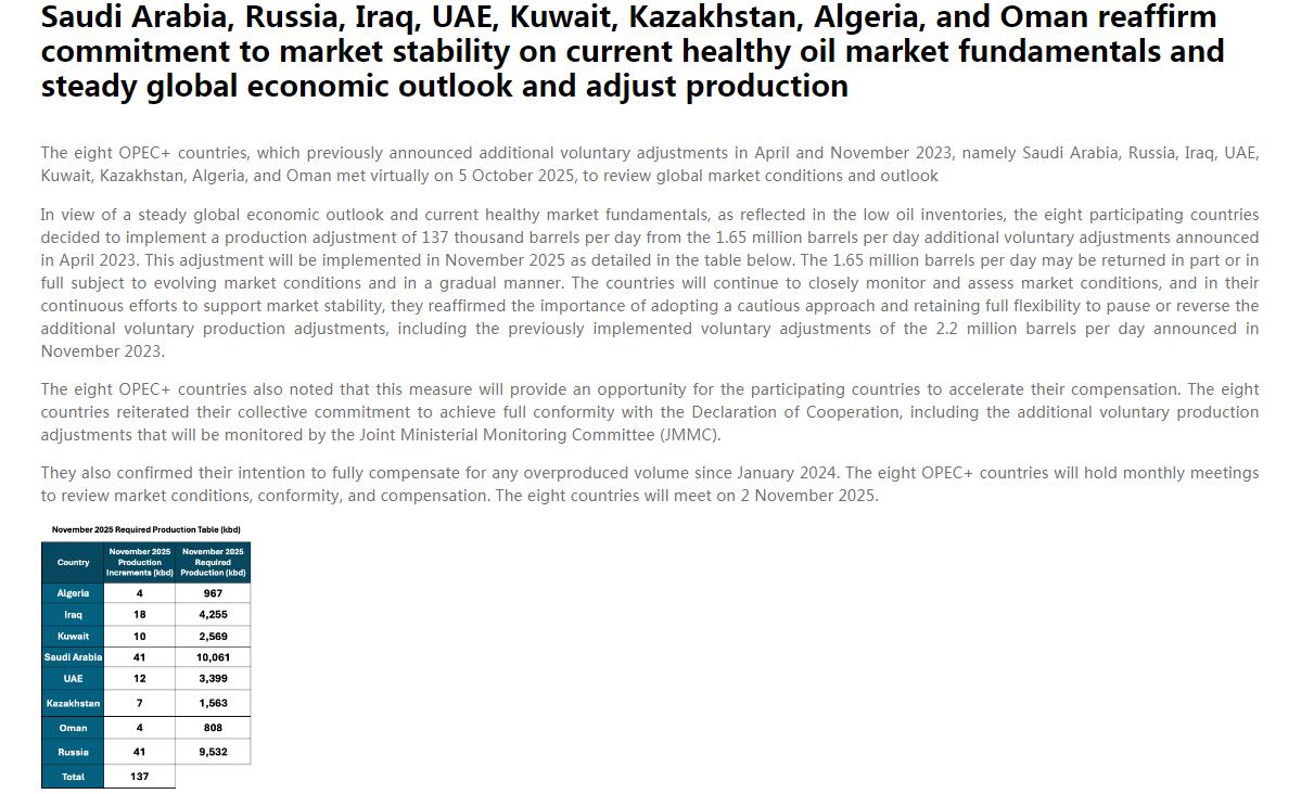 高開超1%!OPEC+繼續(xù)小幅增產(chǎn),市場(chǎng)份額戰(zhàn)烽煙再起