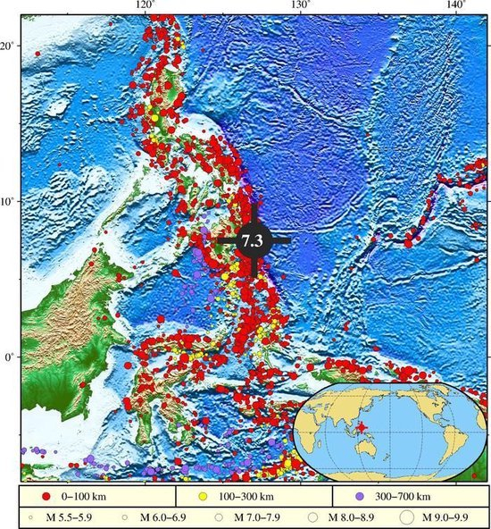中國(guó)地震臺(tái)網(wǎng)自動(dòng)測(cè)定:10月10日09時(shí)44分在菲律賓棉蘭老島附近(北緯7.35度,地震東經(jīng)126.82度)發(fā)生7.3級(jí)左右地震(最終結(jié)果以正式速報(bào)為準(zhǔn))。在強(qiáng)震發(fā)生后,菲律賓發(fā)布海嘯預(yù)警。