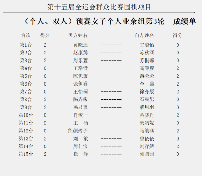 中華人民共和國第十五屆運(yùn)動會群眾比賽圍棋項(xiàng)目(個(gè)人、雙人)預(yù)賽由國家體育總局群眾體育司、中國圍棋協(xié)會主辦,上海市體育局、奉賢區(qū)人民政府承辦,上海棋院、上海市圍棋協(xié)會、奉賢區(qū)體育局執(zhí)行。