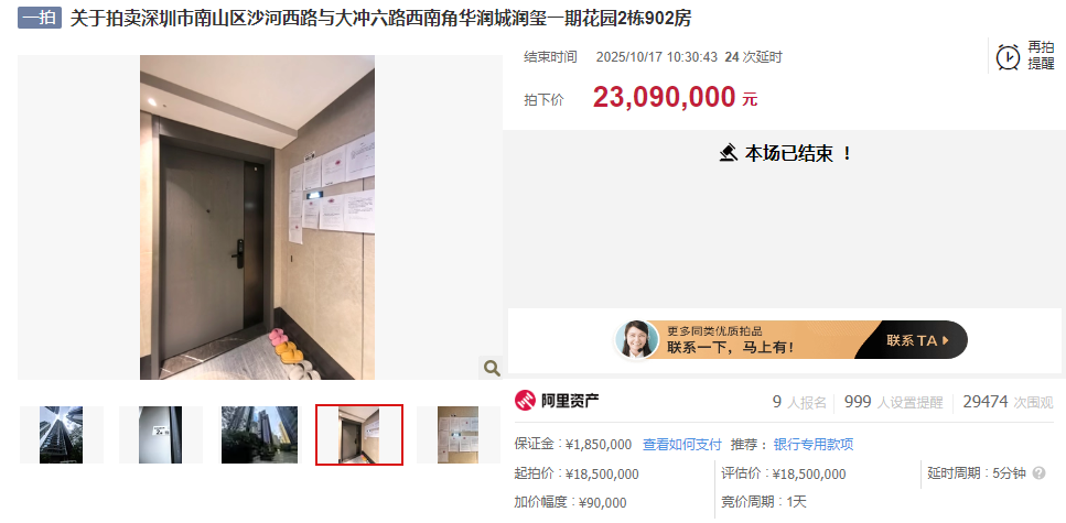 雖然價(jià)差沒有深圳灣悅府大,但同樣吸引了29474人圍觀,9位買家報(bào)名,最終競(jìng)價(jià)25輪才落錘。