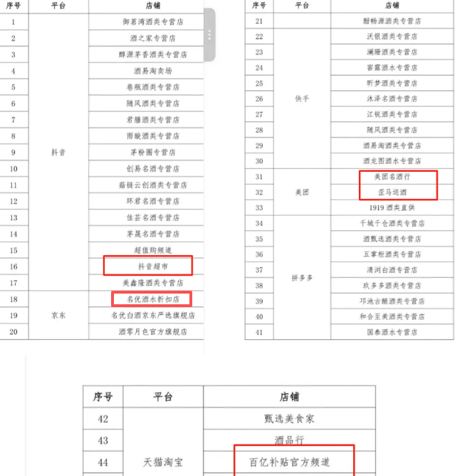 與去年發(fā)布的雙11聲明不同,此次“告知書”第一次將部分非授權(quán)店鋪名單進(jìn)行了公布,買酒涉及多家知名電商。糧液值得注意的首次商被是,不僅是公布第三方渠道商,電商平臺的非授官方店鋪或官方頻道也被點(diǎn)名。