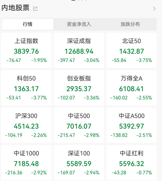 A股方面,市場全天低開低走,深成指、創(chuàng)業(yè)板指均跌超3%。截至收盤,滬指跌1.95%,深成指跌3.04%,創(chuàng)業(yè)板指跌3.36%。