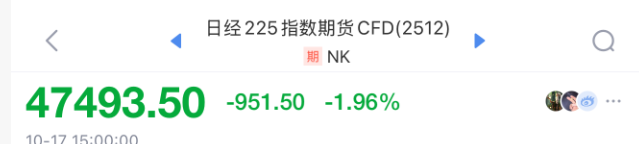 日本股市收盤后,日經(jīng)期貨跌約2%。