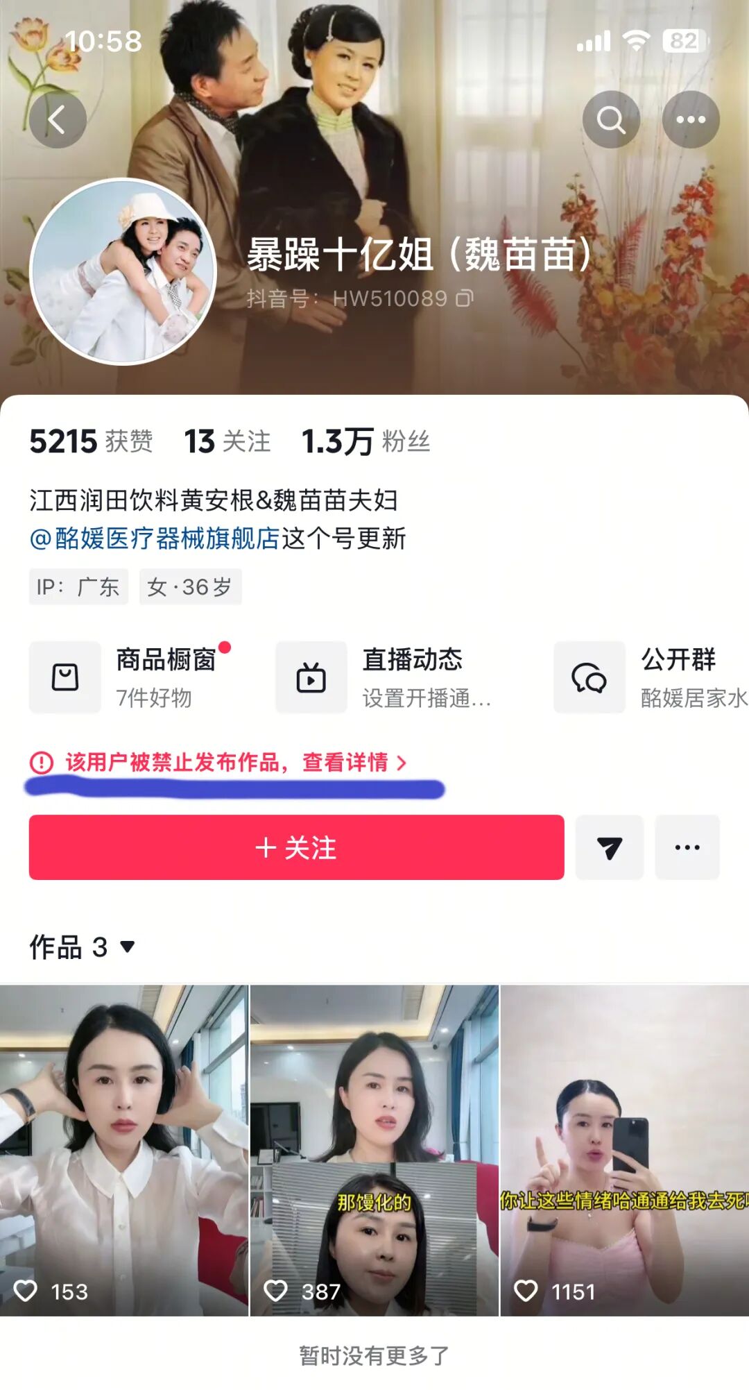 “十億暴躁姐”賬號(hào)遭封禁,曾自曝“家丑”、遭潤(rùn)田發(fā)聲明