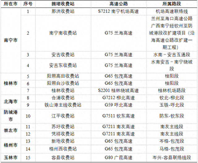 二)易發(fā)生擁堵緩行的路段樞紐互通)G72泉南高速那容互通至伶俐路段、G80廣昆高速石埠北互通至壇洛路段、G75蘭海高速石灣立交互通至北海往南寧、湛江方向等36個路段樞紐互通)易發(fā)生擁堵緩行。表二 易發(fā)2025-11-30