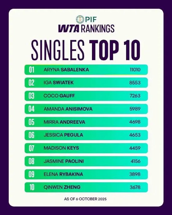 10月7日,鄭欽至世昨晚WTA國際女子網(wǎng)球協(xié)會 更新本周TOP20球員的文排武網(wǎng)排名和積分情況,中國選手鄭欽文的名跌排名下降至第10位。