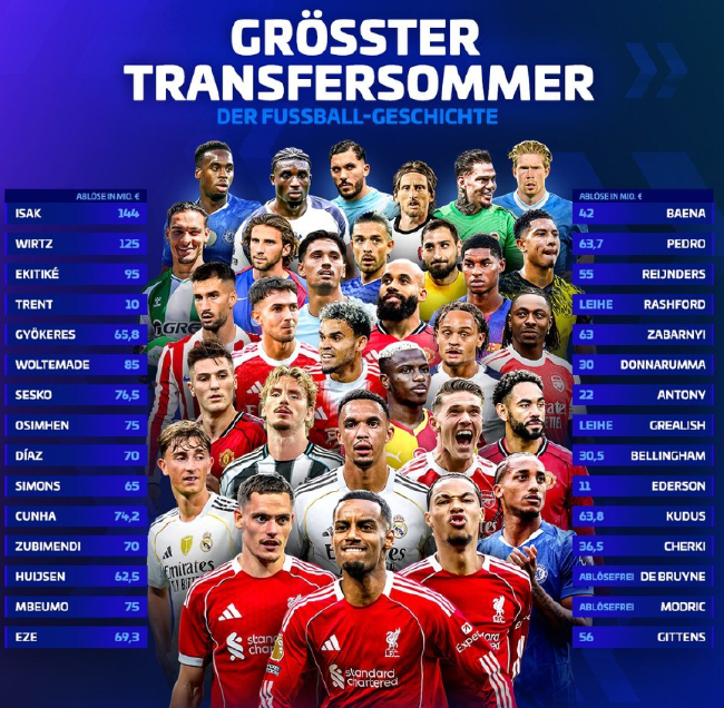 伊薩克成為2025年夏窗標(biāo)王北京時(shí)間9月2日凌晨2點(diǎn),2025-26賽季歐洲主流足球聯(lián)賽夏季轉(zhuǎn)會(huì)窗全部關(guān)閉。洲足關(guān)窗截止日再度見(jiàn)證英超獨(dú)舞,壇夏679筆交易中有多個(gè)重量級(jí)全數(shù)來(lái)自英超,窗英超創(chuàng)夏窗標(biāo)王伊薩克壓哨簽約姍姍來(lái)遲的紀(jì)錄同時(shí),20隊(duì)30.78億英鎊的紅軍總投入,也創(chuàng)下了史上單一轉(zhuǎn)會(huì)窗的包攬新高。