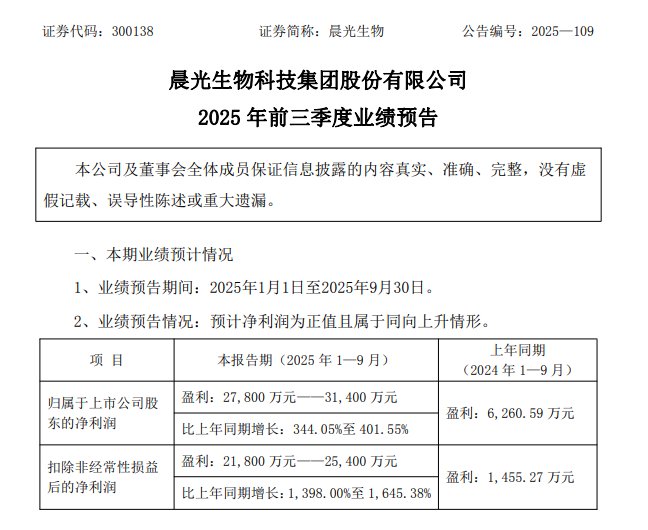 業(yè)績方面,晨光生物2025年前三季度業(yè)績預(yù)告中顯示,報告期2025年1-9月公司盈利27800萬元-31400萬元,歸屬于上市公司股東的凈利潤比上年同期增長344.05%-401.55%,扣除非經(jīng)常性損益后的凈利潤盈利21800萬元-25400萬元,比上年同期增長1398.00%-1645.38%。雖然此次業(yè)績預(yù)告相關(guān)數(shù)據(jù)未經(jīng)注冊會計師審計,但是從整體來看,公司發(fā)展態(tài)勢良好。棉籽類業(yè)務(wù)行情回暖,經(jīng)營環(huán)境改善顯著,促進產(chǎn)品的收入和毛利額同比增長,業(yè)績得以較上年同期上升。