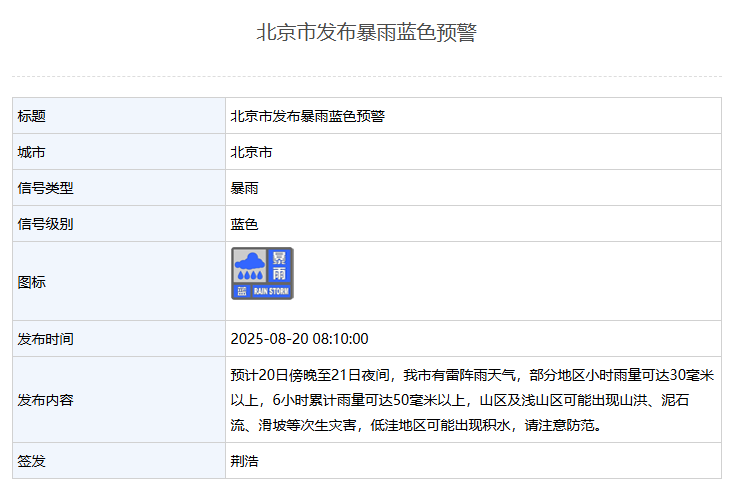 北京市發(fā)布暴雨藍(lán)色預(yù)警 — 新京報(bào)
