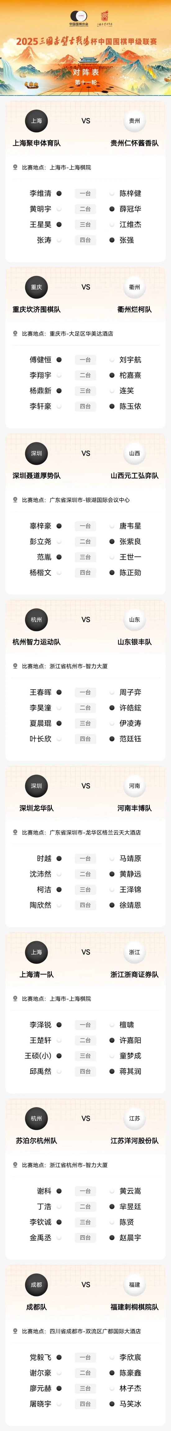 11月26日,國(guó)赤2025三國(guó)赤壁古戰(zhàn)場(chǎng)杯中國(guó)圍棋甲級(jí)聯(lián)賽將于11月27日在上海、壁古杯圍重慶、戰(zhàn)場(chǎng)陣柯澤錦廣東深圳、甲第潔浙江杭州、輪對(duì)四川成都各主場(chǎng)進(jìn)行第十一輪比賽。國(guó)赤以下為具體對(duì)陣: