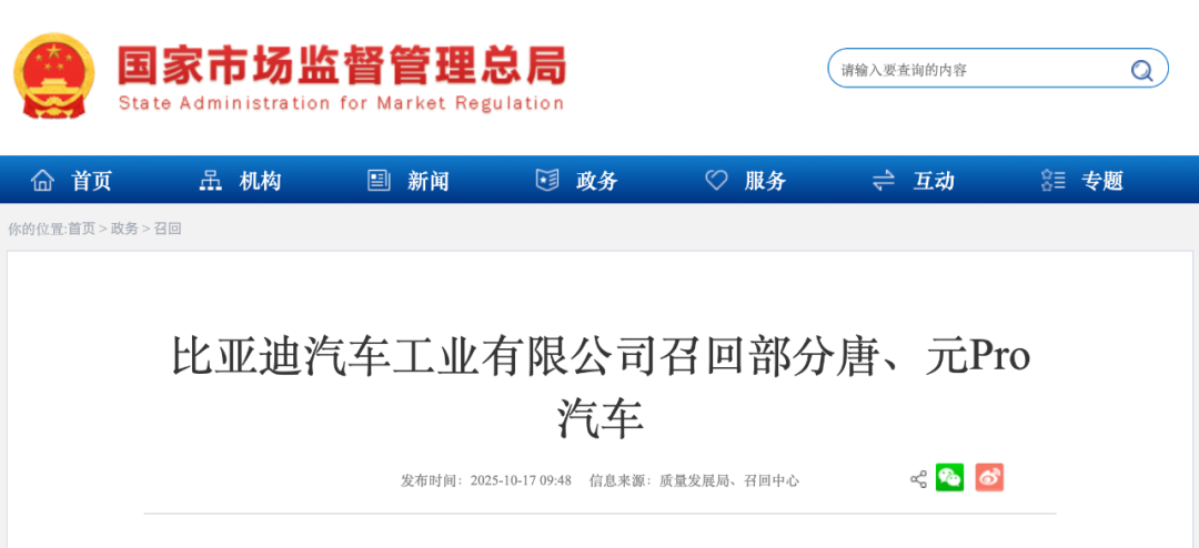 日前,唐比亞迪汽車工業(yè)有限公司根據(jù)《缺陷汽車產(chǎn)品召回管理條例》和《缺陷汽車產(chǎn)品召回管理條例實施辦法》的比亞要求,向國家市場監(jiān)督管理總局備案了召回計劃。迪召