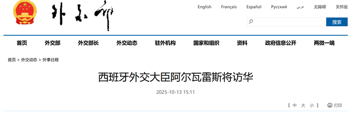 外交部網(wǎng)站13日消息,西班外交部發(fā)言人宣布: