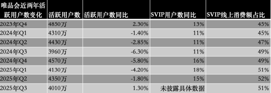 而2025年第三季度,唯品會(huì)活躍用戶(hù)數(shù)為4010萬(wàn),雖然實(shí)現(xiàn)了同比增長(zhǎng)1.3%,為近兩年首次增長(zhǎng),但這一增長(zhǎng)的“含金量”需要冷靜看待。
