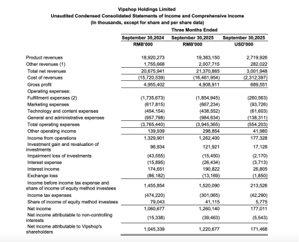 中國(guó)特賣(mài)電商龍頭唯品會(huì)近日發(fā)布2025年第三季度財(cái)報(bào)。逃離
