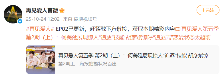 24日中午,前辭去上千萬《再見愛人》官微更新第二期節(jié)目動態(tài)。市公司董事