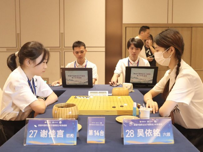 8月14日,首屆中國職業(yè)女子圍棋青少年?duì)幇再惽皟奢啽荣愒诮K省張家港市華芳新城酒店戰(zhàn)罷;吳依銘、中國職業(yè)爭霸徐海哲等10人兩戰(zhàn)全勝。女圍明天九點(diǎn)繼續(xù)進(jìn)行第三輪比賽,棋青吳依銘七段對戰(zhàn)丁柯文四段、依銘徐海哲VS魏欣桐、等兩陳心飏VS嚴(yán)惜驀。連勝