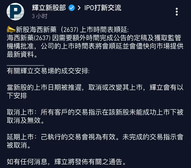 海西新藥突然延遲上市,暗盤(pán)交易恐作廢?涉逾1.2億元