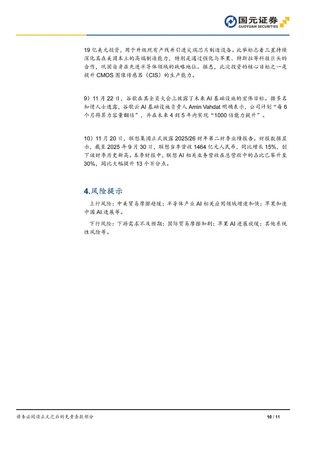 上行風險:中美貿(mào)易摩擦趨緩;半導體產(chǎn)業(yè)AI相關(guān)應用領域增速加快;蘋果加速中國AI進展等。