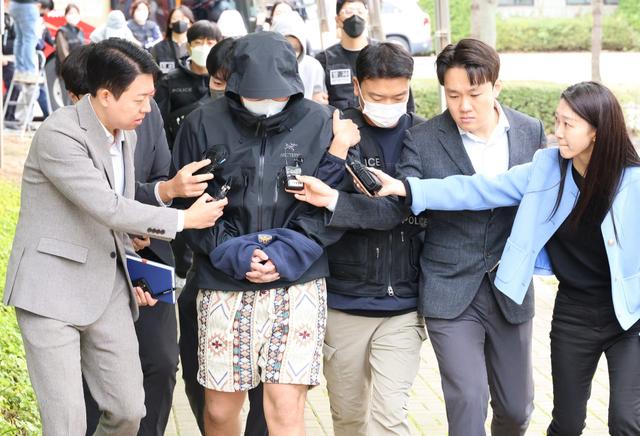 當?shù)貢r間2025年10月20日,警方韓國忠清南道洪城,已逮涉嫌詐騙的捕名柬埔寨遣返嫌疑人前往大田地方法院洪城分院接受逮捕前嫌疑人審訊(逮捕令實質(zhì)審查)。視覺中國 圖