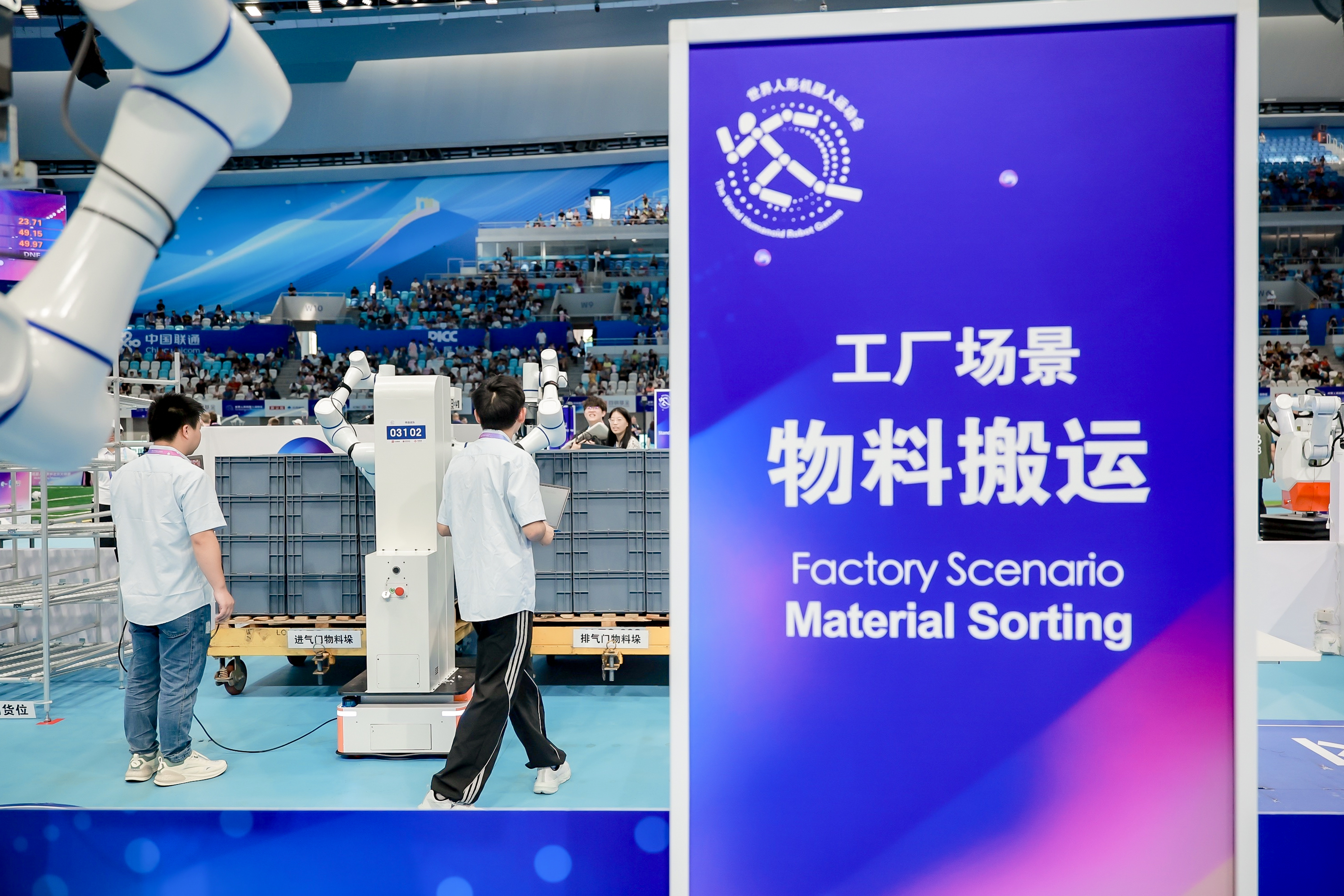 世界人形機(jī)器人運(yùn)動(dòng)會(huì)物料搬運(yùn)比賽現(xiàn)場。官方供圖