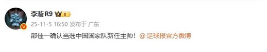 直播吧11月05日訊 足球報(bào)突發(fā)消息,邵佳一確認(rèn)出任中國(guó)國(guó)家隊(duì)新任主帥!報(bào)邵