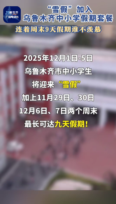 10月26日,新疆維吾爾自治區(qū)文旅廳官微“新疆是個(gè)好地方”發(fā)布消息:2025年12月1日至5日,烏魯木齊市中小學(xué)生將迎來(lái)“雪假”,加上11月29日、30日和12月6日、7日兩個(gè)周末最長(zhǎng)可達(dá)9天假期。