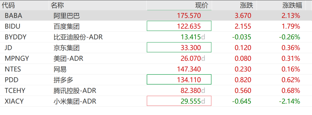 中概股延續(xù)近期漲勢(shì),納斯達(dá)克中國金龍指數(shù)漲近0.9%,富時(shí)中國A50期貨漲超0.3%,但個(gè)股表現(xiàn)有所分化,科技龍頭漲跌不一,阿里巴巴漲超2%,百度、京東、美團(tuán)拼多多等飄紅,小米集團(tuán)跌超2%。