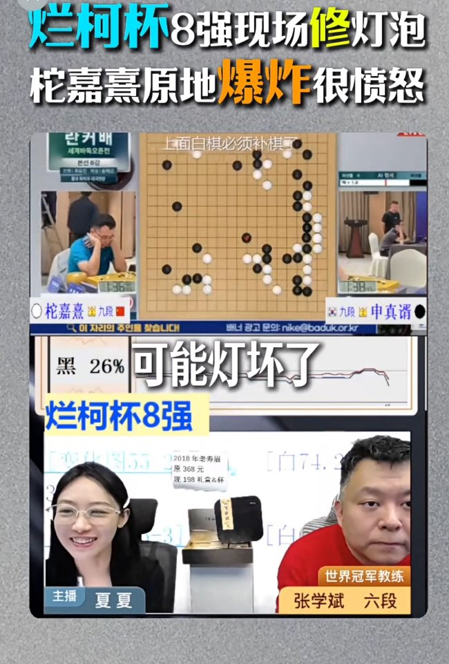 10月9日,第三屆衢州爛柯杯世界圍棋公開(kāi)賽八強(qiáng)賽繼續(xù)在衢州進(jìn)行。還原賽事進(jìn)行期間出現(xiàn)了“衢州爛柯杯八強(qiáng)賽現(xiàn)場(chǎng)修燈泡,爛柯影響柁嘉熹比賽”的杯臨傳言。