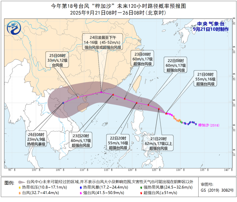 中央氣象臺預(yù)計,23日開始,臺風(fēng)“樺加沙”23日將進入南海東北部海面,后期強降水將陸續(xù)影響廣東、福建、廣西等地,最強影響時段為23日至25日,臺灣海峽南部、南海北部海域、華南沿海都將出現(xiàn)強風(fēng)雨天氣。